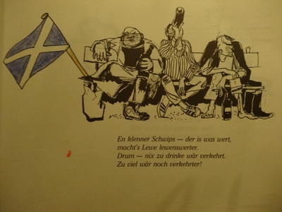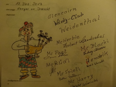 Mit einem Eintrag ins Gästebuch des Hauses bedankte sich der Whisky-Club bei Familie Biebinger für einen informativen und ganz geselligen Abend in freundschaftlicher Runde. Spötter meinten, da hätte sich McHerbie doch gleich selbst verewigt.